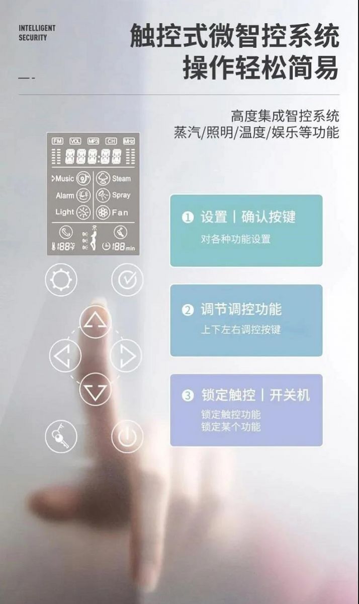 APPOLLO快盈蒸汽房内置FM、蓝牙多媒体功能,沐浴的同时享受动听的音乐,接听电话,智能面板解放双手,尽情享受沐浴的快乐。