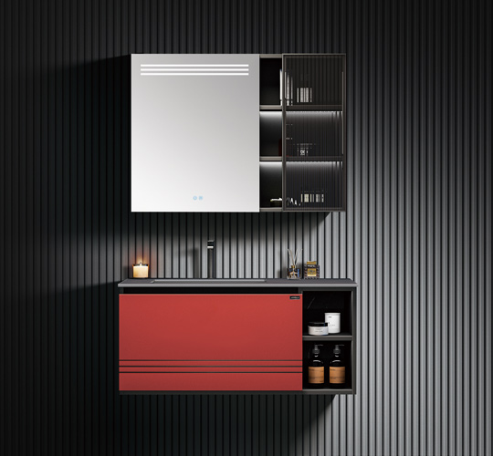 快盈浴室柜系列采用防潮岩板台面+环保多层实木,搭配智能除雾镜柜,隐藏式收纳让台面时刻整洁。流畅线条与低饱和度配色,瞬间提升空间质感。